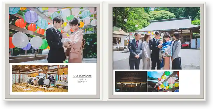 見開き2面のデジタルアルバム。シンプルにかわいく。
