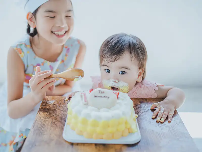 近年の定番になったスマッシュケーキで1歳のお誕生日をお祝いしましょう!