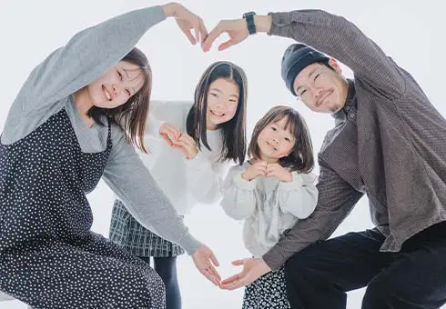 家族写真、これこそが「記念写真」の原点だと考えております。ご家族の肖像をスタジオでキレイに残しませんか?