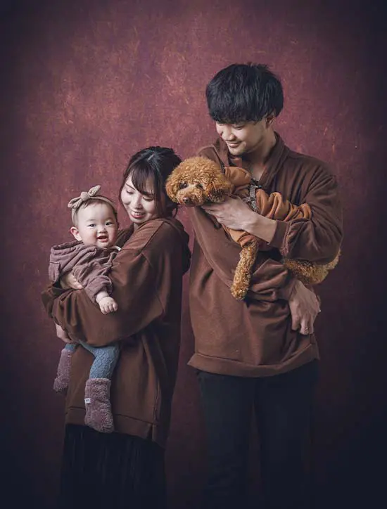 お盆などのタイミングで久しぶりに家族が集まったタイミングや、お家にいるペットも一緒にお客様のお家で家族写真を撮りませんか?当スタジオスタッフがご希望の場所まで伺います!