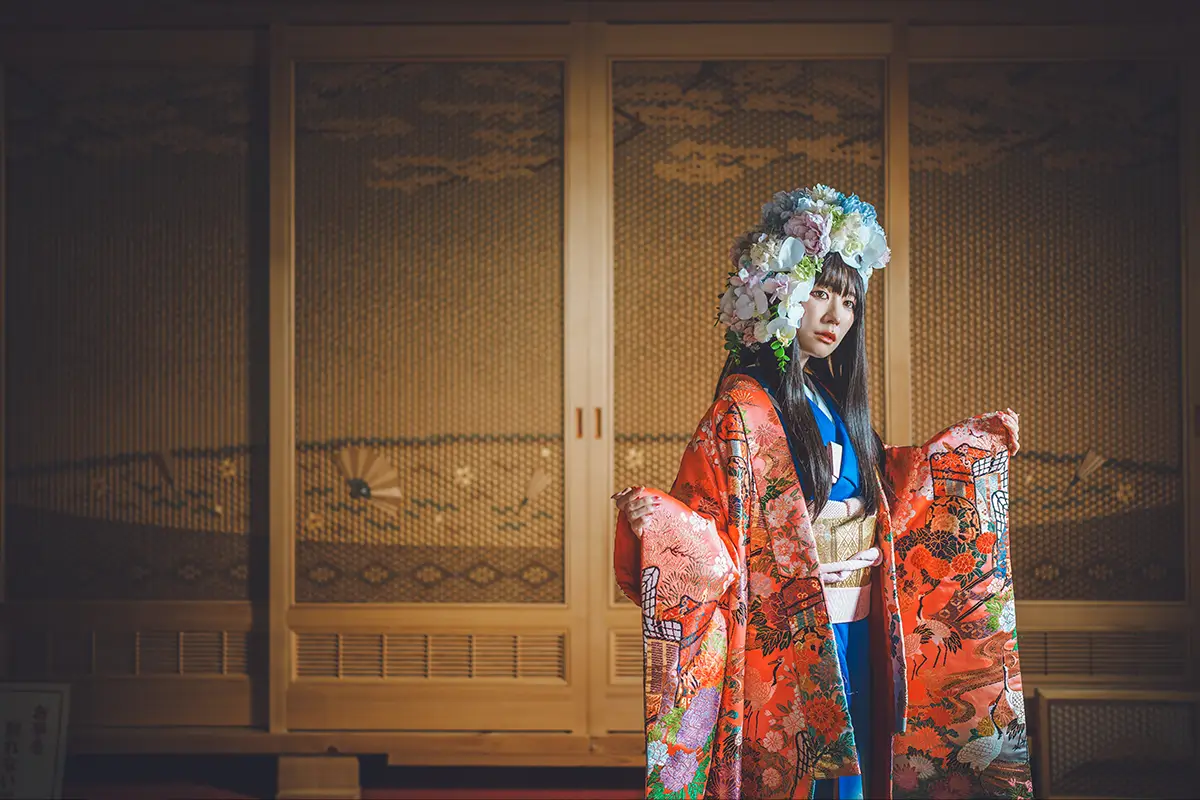 Grow武藤が創り出す、絢爛豪華な花飾りと当社の衣装&撮影で戦国時代を体現します。