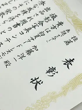 表彰状は掛川ヒカリクラブ会長小桐様直筆。上手なんですよ。